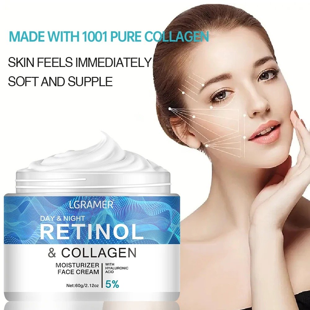 روتينول لإزالة التجاعيد كريم ريتينول فعال يحتوي على الكولاجين وحمض الهيالورونيك لترطيب البشرة وتقليل ظهور الخطوط الدقيقة والتجاعيد كما يمنح بشرتك مظهراً أكثر شباباً ومرونة